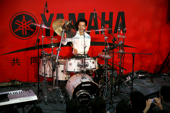 08年10月11日,一年一度的上海国际乐器展正式对公众开放。不少厂家纷纷拿出自家“看家本领”来拉拢消费者,其中不乏请来乐坛大腕助阵。现场最引人注目的,是在日本享有盛誉的鼓手神保彰,此次也被厂家请到乐器展现场为观众演出,吸引大量观众围观,把舞台围的“水泄不通”。