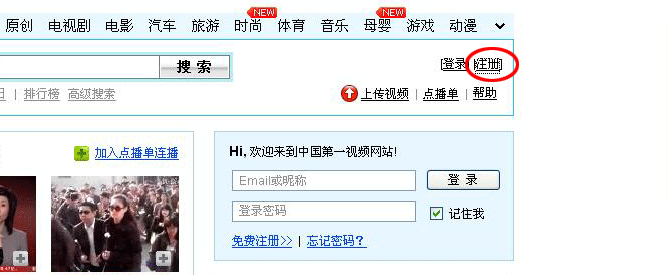 (1)注册成为优酷网用户