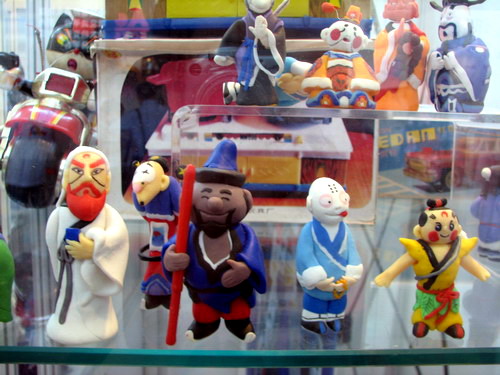 怀旧玩具展上漫迷自制的中国经典动画片泥塑