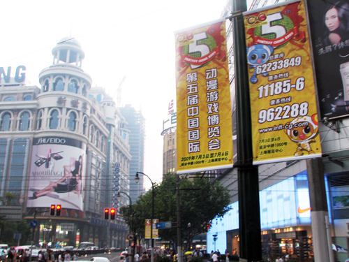 今年展会五周年的喜庆气氛,在上海最繁华的南京路步行街都能感受到