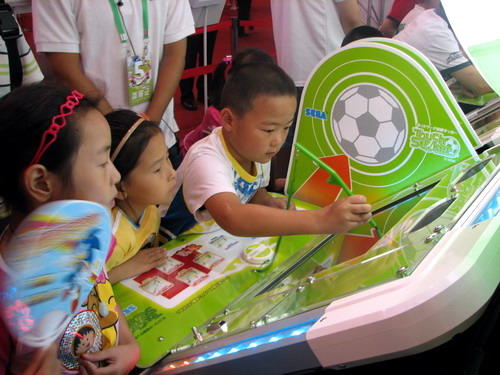 世嘉带来日本最新的足球游戏,操作竟然是通过遥感笔!国内绝对首次看到!(由于展商保密原因不能提供详细画面图,请自行进展馆感受~绝对与众不同~)