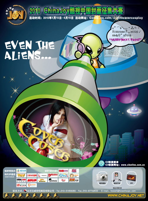 以下附2010年ChinaJoy Cover Coser封面大赛平媒海报样图作为参考: