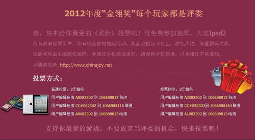 金翎奖活动页面:http://www.chinajoy.net/2012award