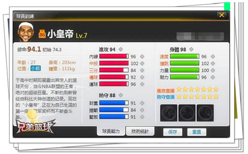 你能想到的NBA现役球员,名人堂球员,在《兄弟篮球》游戏内全部可以见到。他们有机会为您的球队效力,并且每个球员都有自己独一无二的昵称。《兄弟篮球》采用即时操控比赛模式,完美融入球员养成概念,RPG式的属性加点,引领世界篮球类网页游戏进入新时代。球员数据也由资深NBA评论人士设计录入,保证数据的真实性。