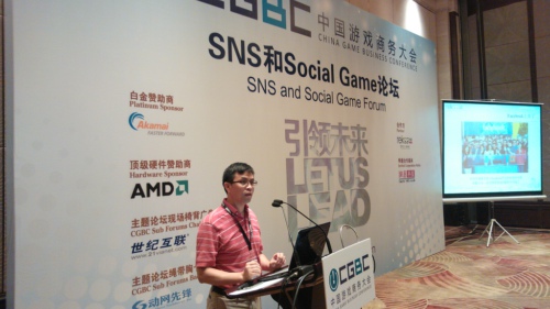 图为热酷创始人兼首席执行官刘勇先生在2012年CGBC SNS和Social Game论坛现场演讲