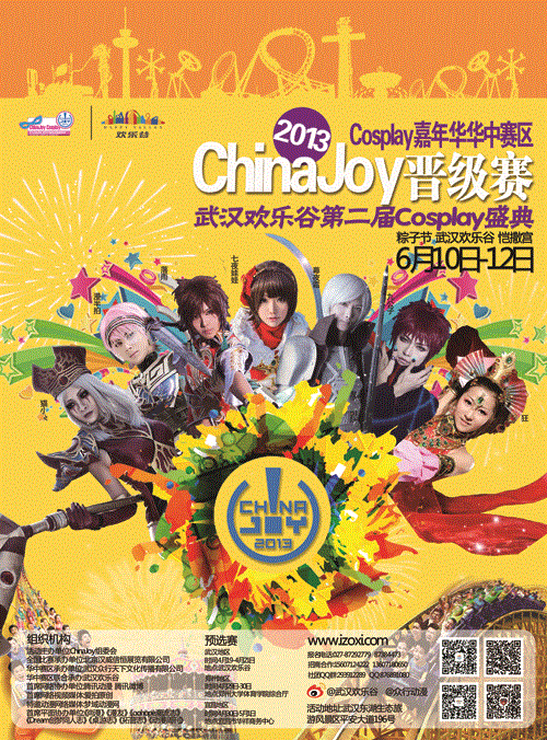 2013 ChinaJoy Cosplay嘉年华活动再次盛大启动,华中赛区现已火热开赛。云集华中地区最眩目,最优秀的Cosplay盛典,无数经典游戏与动漫的完美再现。与最具人气的Cosplay明星落雨、九公子、七夜娃娃、漫半拍、幕夜霜、猫小朵、狂、易文科等同台献艺。
