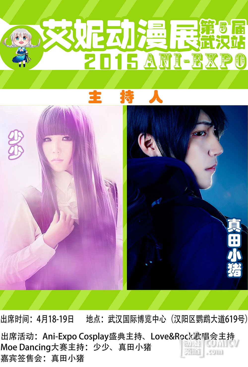 本次现场比赛的评委将由武汉的小伙伴最熟悉的两位~!少少、真田小猪共同担任,4月18-19日两天都会在场~!喜欢他们的小伙伴一定要来呀