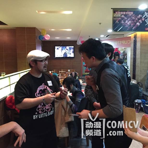在最后举行的中日创作者交流会暨烤肉大会上,在阵阵肉香的衬托下,主办方通过抽签的形式安排中日社团彼此交换礼物和联系方式。大概也只有通过这样的方式,才能让略显腼腆的死宅可以放开胆与同好直接交流。这里要特别感谢几位不辞辛苦的翻译,没有他们这群创作者死宅们的中二词汇就无法准确传达啦!