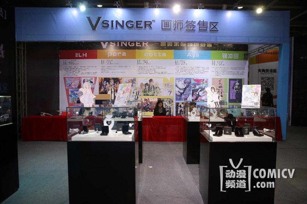 Vsinger联合展位特邀 2LH、pora、Aya、cotta、锦冲田五位知名Vsinger画师到现场进行签售活动。粉丝们可以与平时在网上见图不见人的画师大大们近距离接触、交谈,关系变得更加紧密、亲切。
