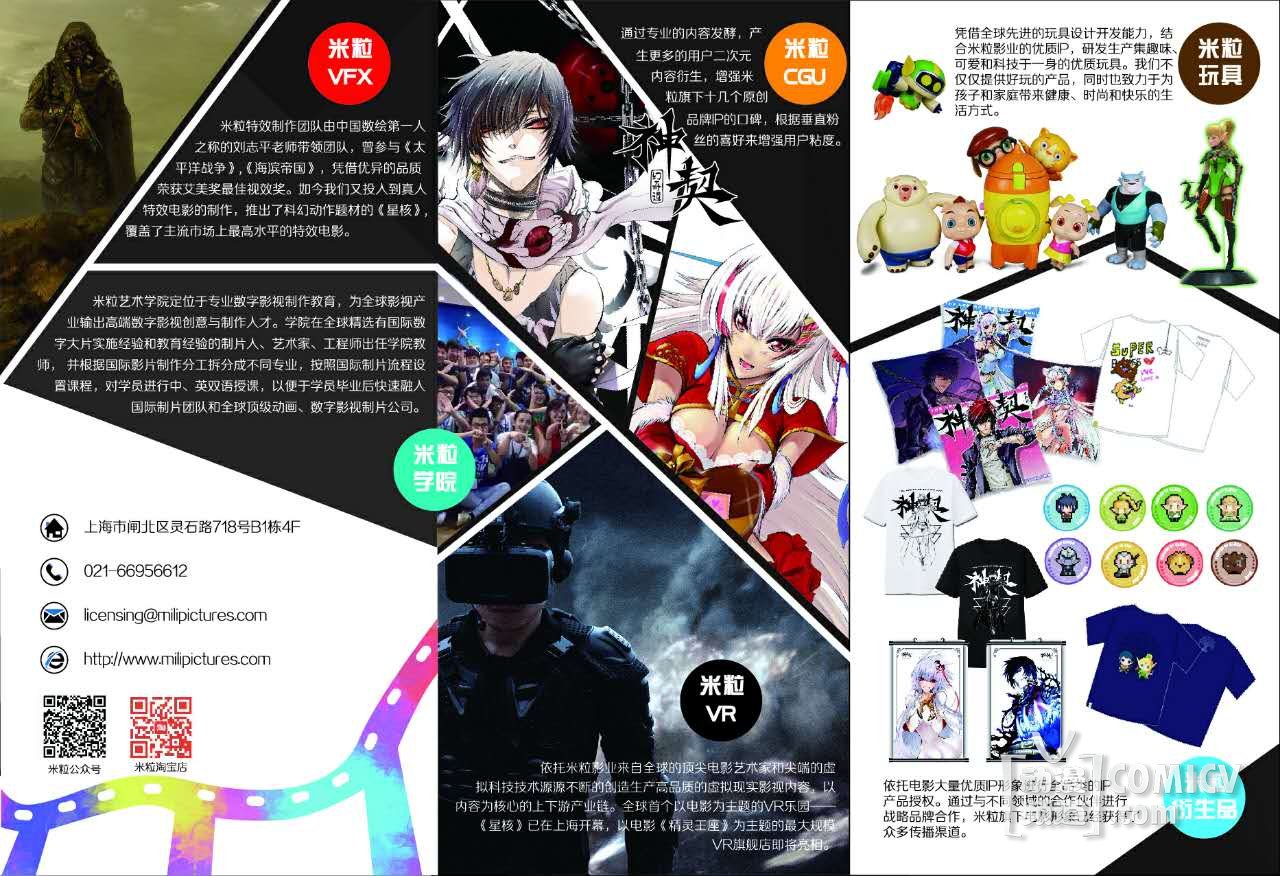 米粒的电影和二次元作品IP的衍生品已经覆盖了包括电子消费品、服饰、家用品、食品饮料、玩具、日用消费品、文具、音像出版物、印刷出版物、游戏等领域,开发了上百款授权商品。这些优质原创电影IP的衍生品都亮相本次杭漫。