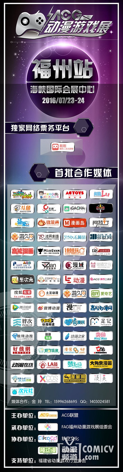 感谢ACG动漫游戏展独家网络票务平台刷刷的鼎力协助,以及斗鱼TV、游久网、爱奇艺、土豆动漫、腾讯视频、17173动漫频道、178动漫频道等合作媒体对展会的大力支持。