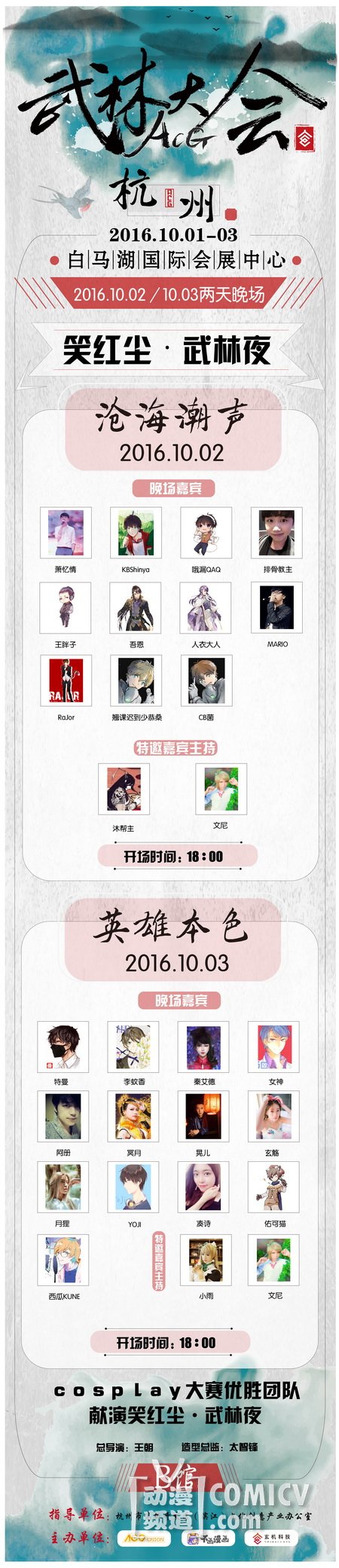 连续三日任性福利根本停不下来,知名coser,ACG音乐人携手著名画师、写手群星闪耀,更有两日晚场音乐会献声笑红尘`武林夜!