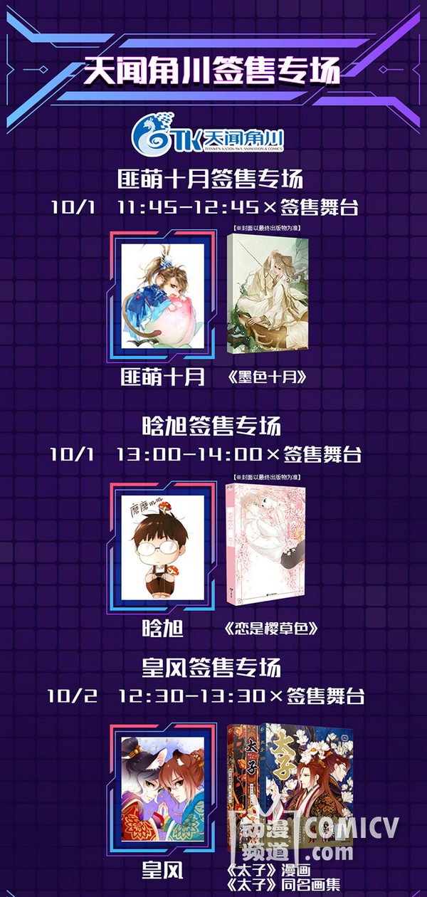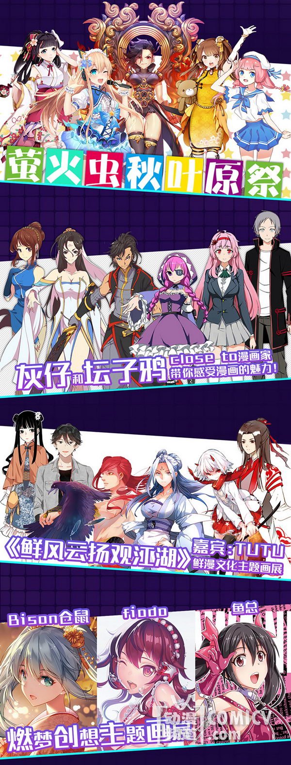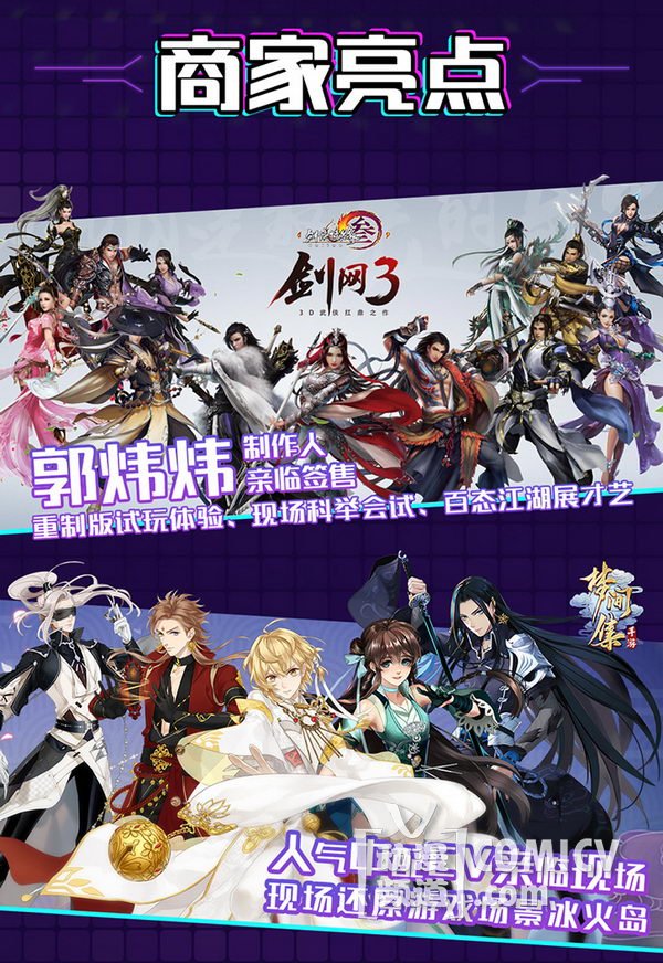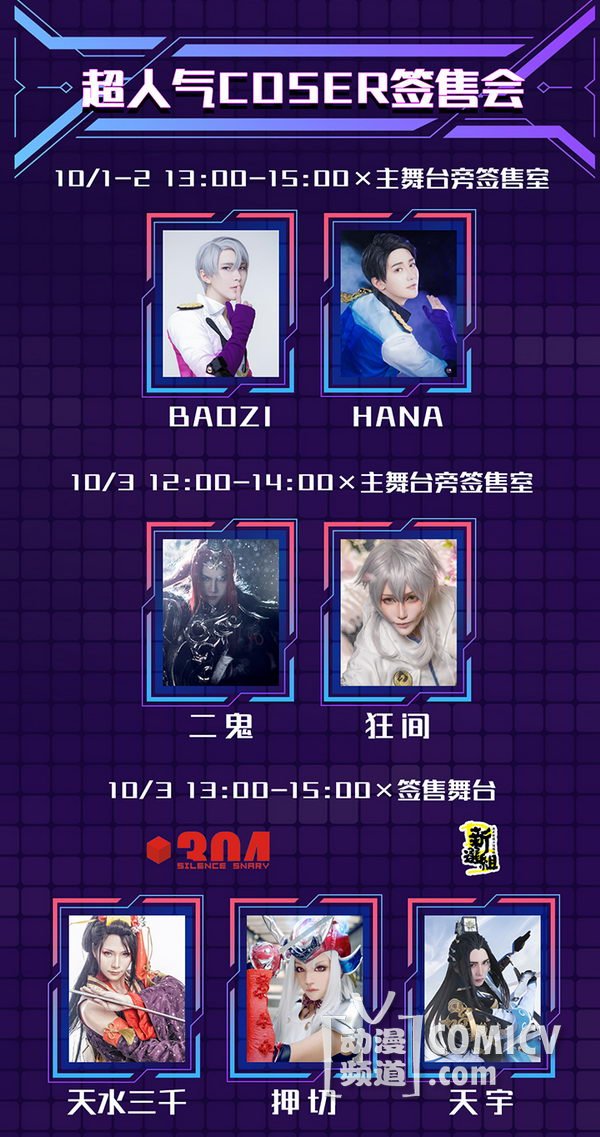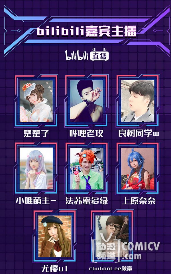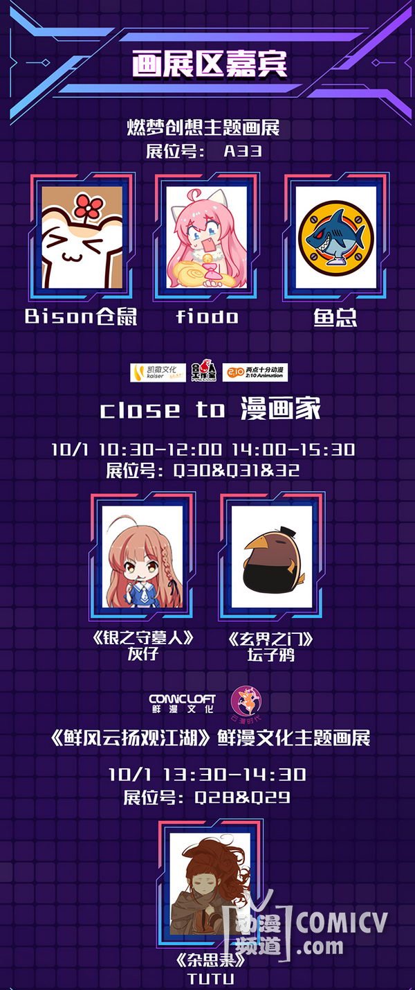 天闻角川,海岸线工作室-《纳米核心》,艾漫,Hobbymax,七创社-《凹凸世界》,Vsinger ,网易游戏-《魔法禁书目录(正版手游)》、阴阳师、神都夜行录、非人学园,盛大游戏-《神无月》、《神域召唤》,腾讯游戏-《初音未来:梦幻歌姬》,西山居-剑网3重制版、梦间集等诸多实力动漫游戏厂商加盟!