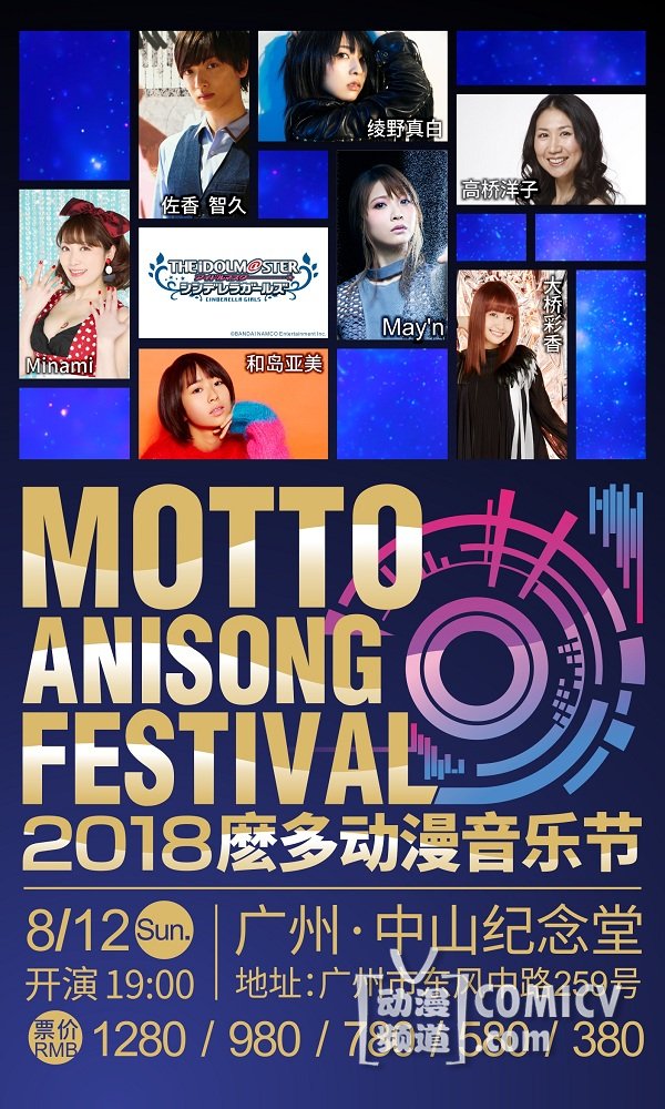 这个夏天《偶像大师灰姑娘女孩》、《新世纪福音战士》、《灼眼的夏娜》、《机动战士高达AGE》、《超级机器人大战OG:神圣战争》、《迷家》、《数码宝贝宇宙:应用怪兽》、《政宗君的复仇》、《魔法少女 俺》、《超时空要塞F》、《加速世界》、《Fate/stay night [Unlimited Blade Works] 》、《驱魔少年 HALLOW》、《精灵宝可梦XY》、《夏目友人帐》等人气作品即将在中山纪念堂举行唱响!8月12日19:00,来麽多动漫音乐节和我们一起High爆盛夏之夜吧!!