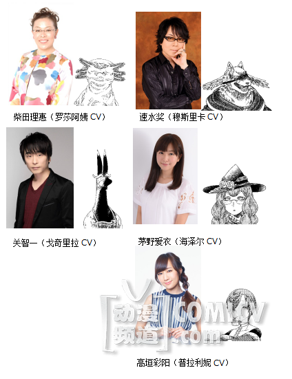 主人公们在旅行中遇到的异形“罗莎阿姨”,将由日本女演员柴田理惠献声。这是她第一次为TV系列动画配音。更多人气声优阵容也追加公开了:速水奖(穆斯里卡CV)、关智一(戈奇里拉CV)、茅野爱衣(海泽尔CV)、高垣彩阳(普拉利妮CV)将分别饰演旅途中形形色色的异形和魔女们。